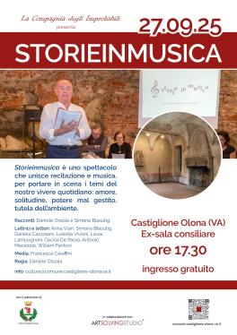 Sabato 27 settembre alle ore 17.30 la Ex-sala consiliare di Castiglione Olona (Piazza G. Garibaldi) ospita il recital "STORIEINMUSICA". Amore, solitudine, potere mal gestito e tutela dell'ambiente sono i temi dei racconti di Daniele Ossola e Simona Blasutig che la "Compagnia degli improbabili" porta in scena, fondendo realtà e finzione, narrazione parlata e ispirazioni musicali.