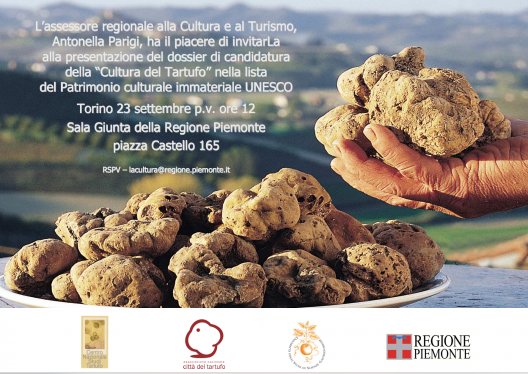 La candidatura, avanzata dall’Associazione Nazionale Città del Tartufo insieme al Centro Nazionale Studi Tartufo, sarà presentata venerdì 23 settembre alle ore 12 presso la Sala Giunta Regionale con la relazione del prof. Giancarlo Grimaldi, Rettore dell’Università degli Studi di Scienze Gastronomiche alla presenza dell’Assessore Regionale alla Cultura e al Turismo Antonella Parigi e di Stefano Colmo responsabile delle Relazioni Istituzionali di Slow Food e Segretario Generale Fondazione Terra Madre.