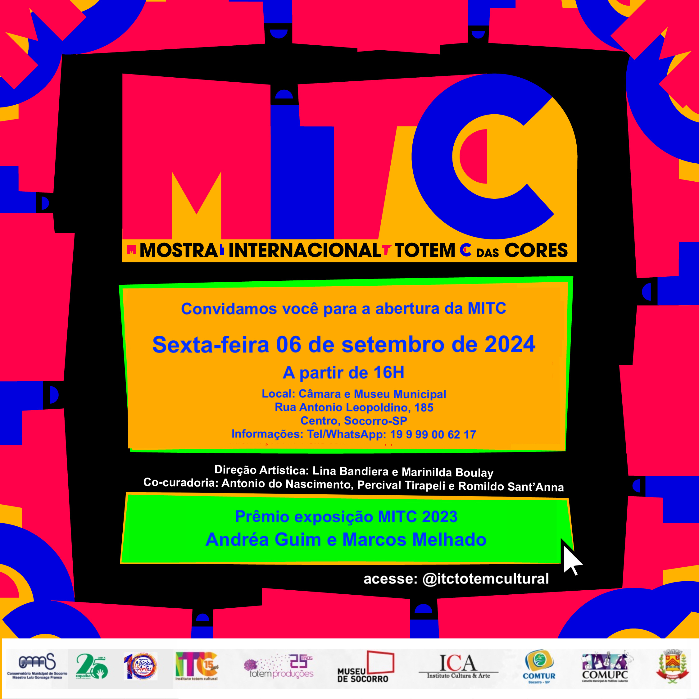 You can find out a little more about the city of Socorro at this link: https://totemcultural.org.br/expo/mitc/ MITC, International Totem of Colors, exhibition, will be part of the program of the 2023 edition of EMACS – Music & Arts Meeting of the Music Conservatory of Socorro, and is organized by Totem Produções, ITC, Instituto Totem Cultural, – ICA, Instituto Cultura & Arte; Municipal Museum, COMUPC; Municipal Council of Cultural Policies; Municipal Secretary of Tourism; Municipal Secretary of Culture and City Hall of Socorro, SP.