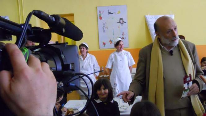 Carlo Petrini assieme a Roberto Burdese illustrano davanti alle telecamere alcuni progetti "slow" nella Cittaslow di BRA, una delle quattro fondatrici del movimento nel 1999.  In particolare, il sistema di refezione scolastica della Città di Bra, dove esperti cuoche e cuochi del territorio portano in tavola alimenti e piatti locali, in perfetto stile Slow Food, "buono, pulito e giusto".